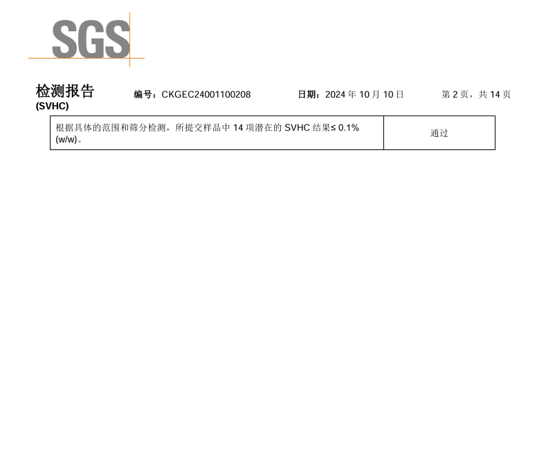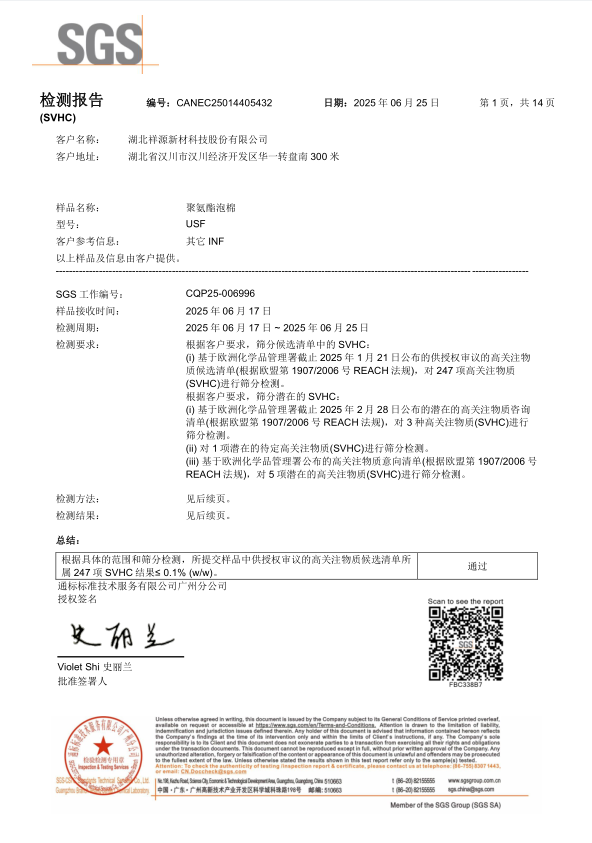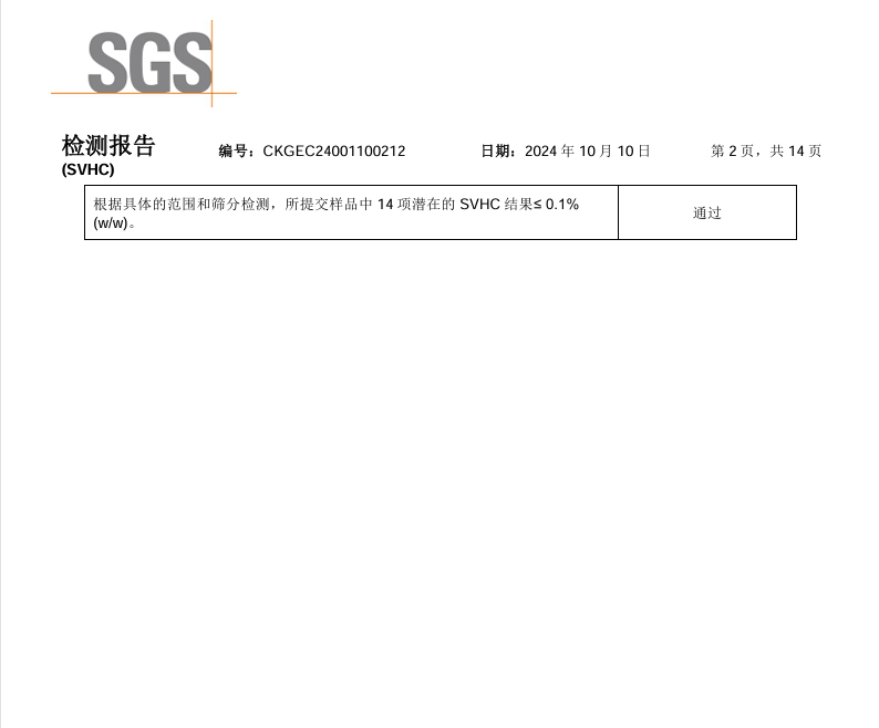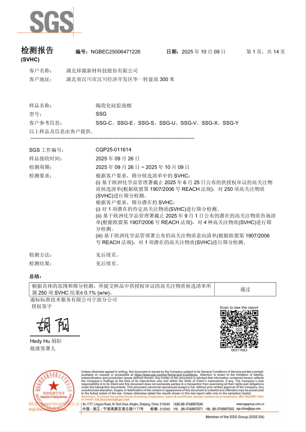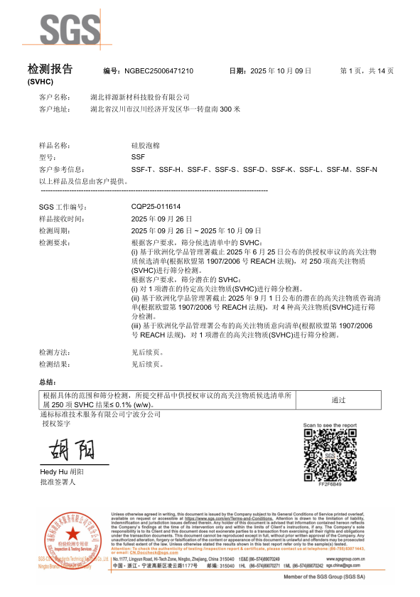 硅膠泡棉SSF SVHC 檢測(cè)報(bào)告