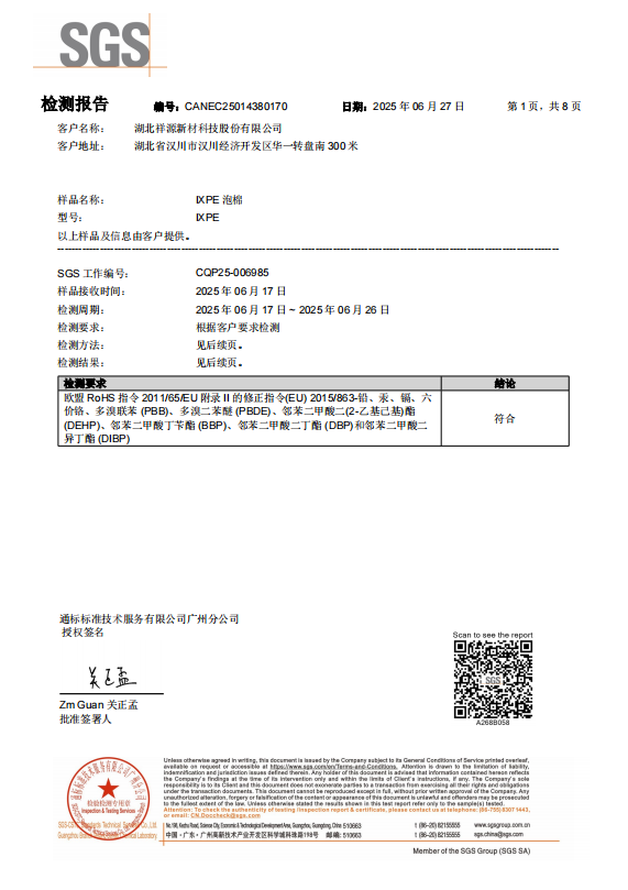 IXPE 白色泡棉 ROHS 檢測(cè)報(bào)告
