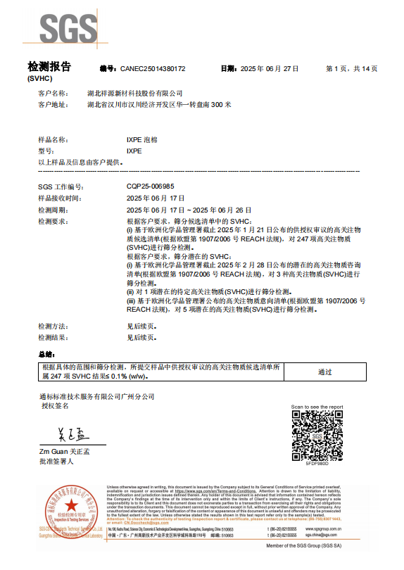 IXPE 白色泡棉 SVHC檢測(cè)報(bào)告
