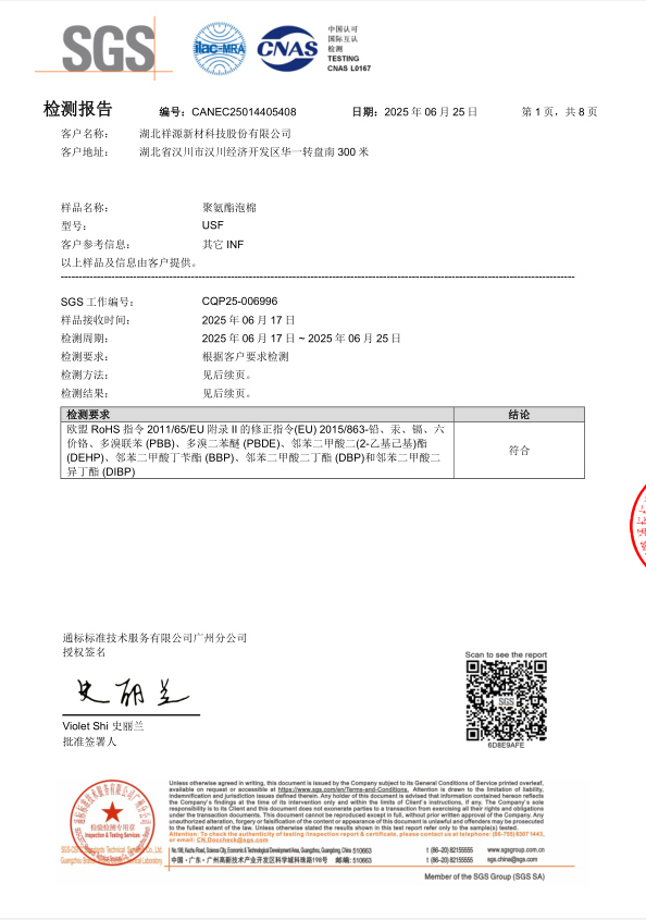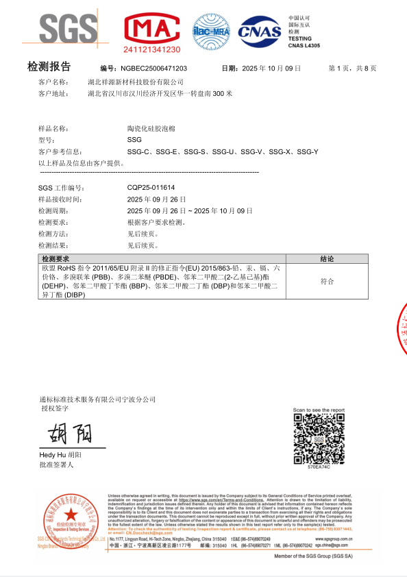 硅膠泡棉SSG ROHS檢測(cè)報(bào)告
