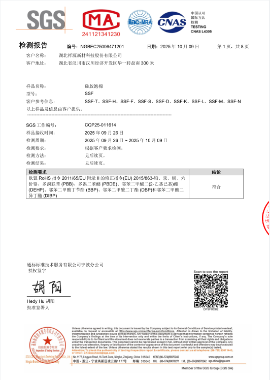 硅膠泡棉 SSF ROHS檢測(cè)報(bào)告