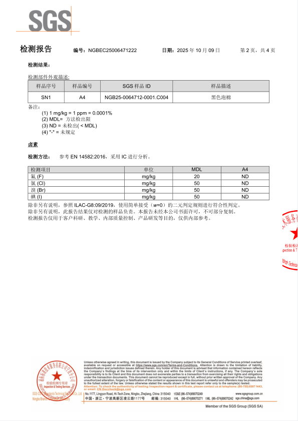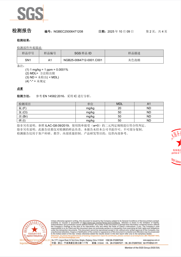 硅膠泡棉SSG 鹵素檢測(cè)報(bào)告