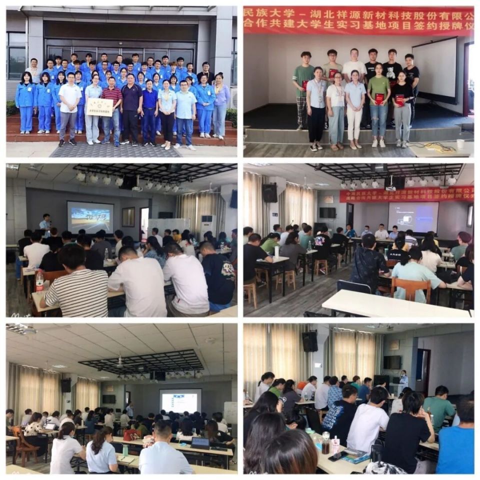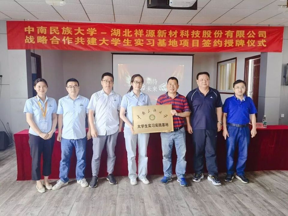 會上,公司代表向給予我司高度信任的中南民大領導表示衷心的感謝,向今天前來參加掛牌儀式的學院領導表示熱烈的歡迎,并表示一定會以高度的責任感和使命感,將祥源新材打造成一流的實習基地。