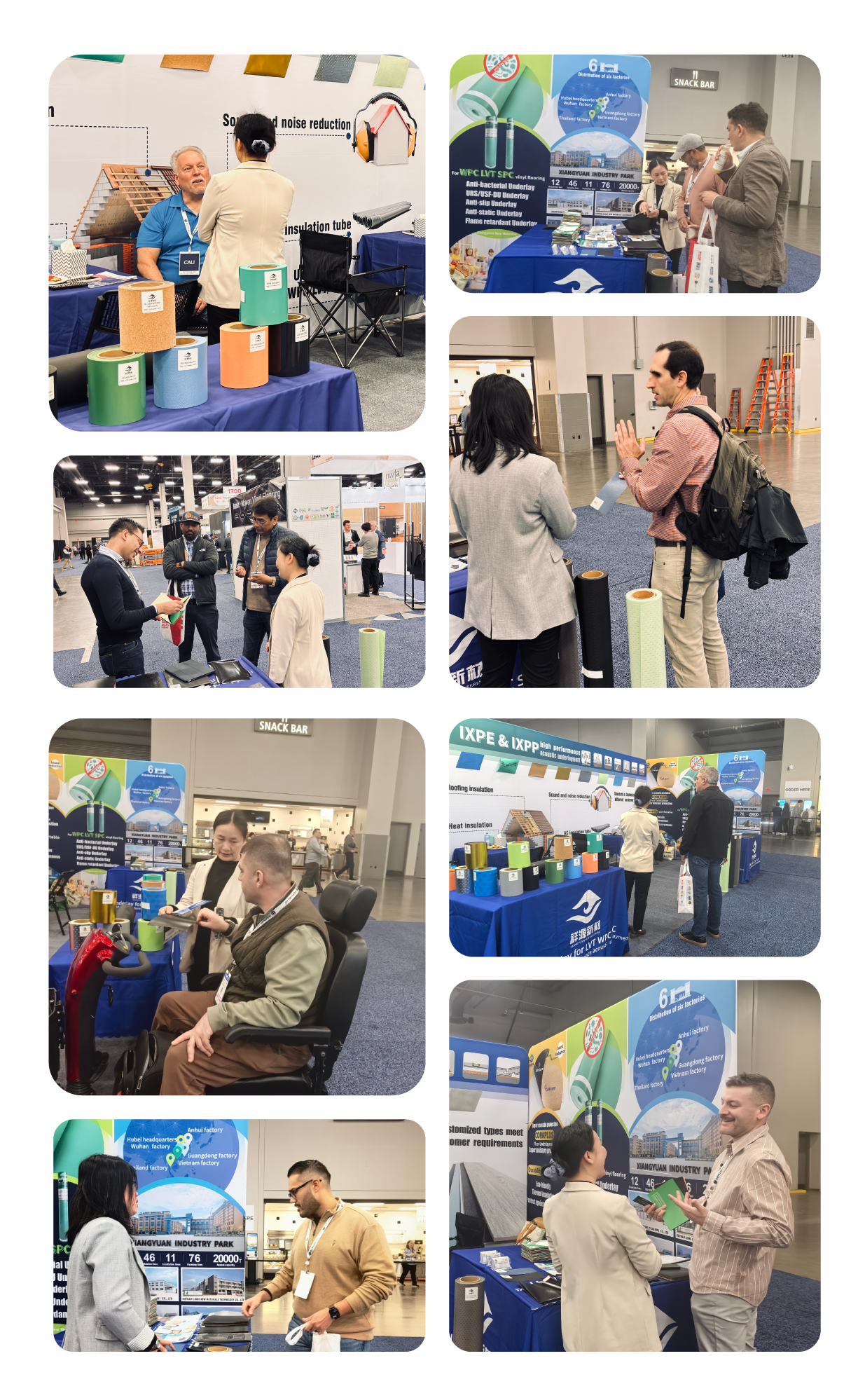 At this exhibition, aligning with industry trends, Xiangyuan presents a rich and varied range of high-performance flooring products. The comprehensive portfolio covers multiple core categories including anti-slip, acoustic insulation, eco-friendly antimicrobial, anti-static, and flame-retardant series. These products are precisely tailored for various mainstream flooring types such as solid wood, engineered, and laminate flooring, meeting diverse application needs across residential, commercial, healthcare, educational, and industrial settings.